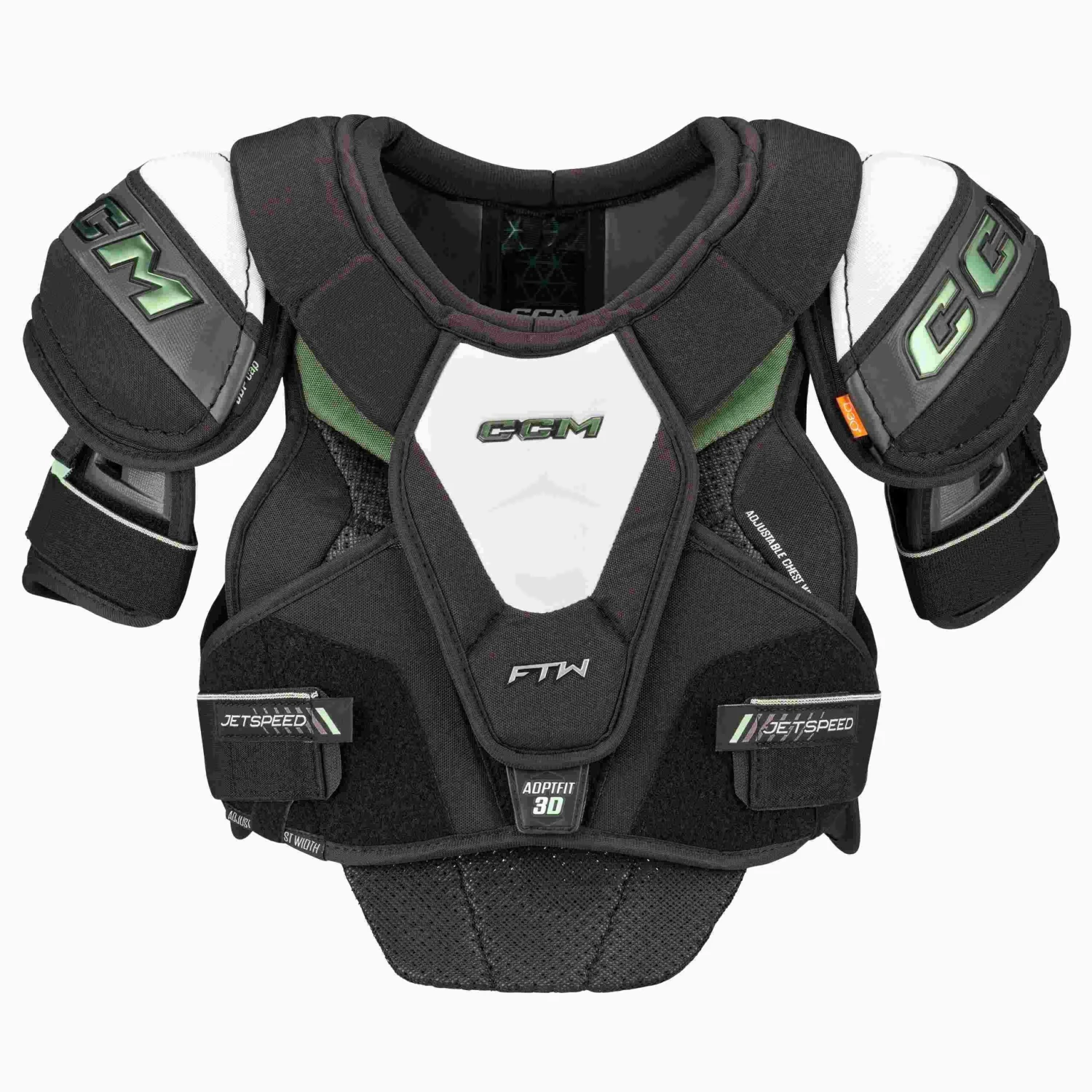 The new JETSPEED FTW women’s shoulder pads offer professional-level protection and a revolutionary design that allows for a customizable fit for all body types and silhouettes. The innovative new base jacket, adjustable in three ways, along with a removable belly pad, reduces pressure points and provides superior comfort and reliable protection throughout the game.
