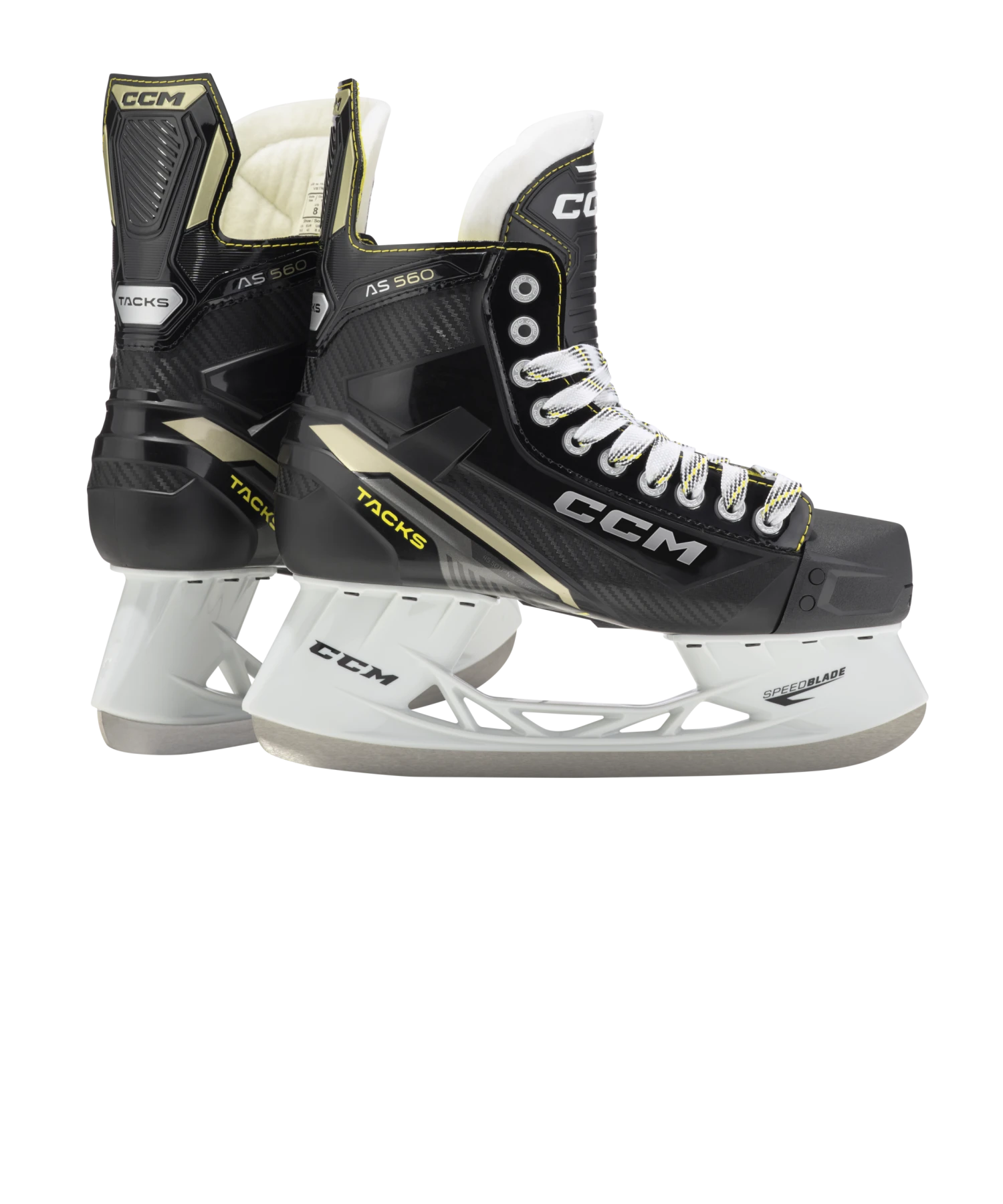 The TACKS AS 560 hockey skates are built for power players looking to maximize force generation. With a 3D injected boot and a 7mm felt tongue with embossed lace-bite protection, these ice skates offer unparalleled durability, protection, and comfort.