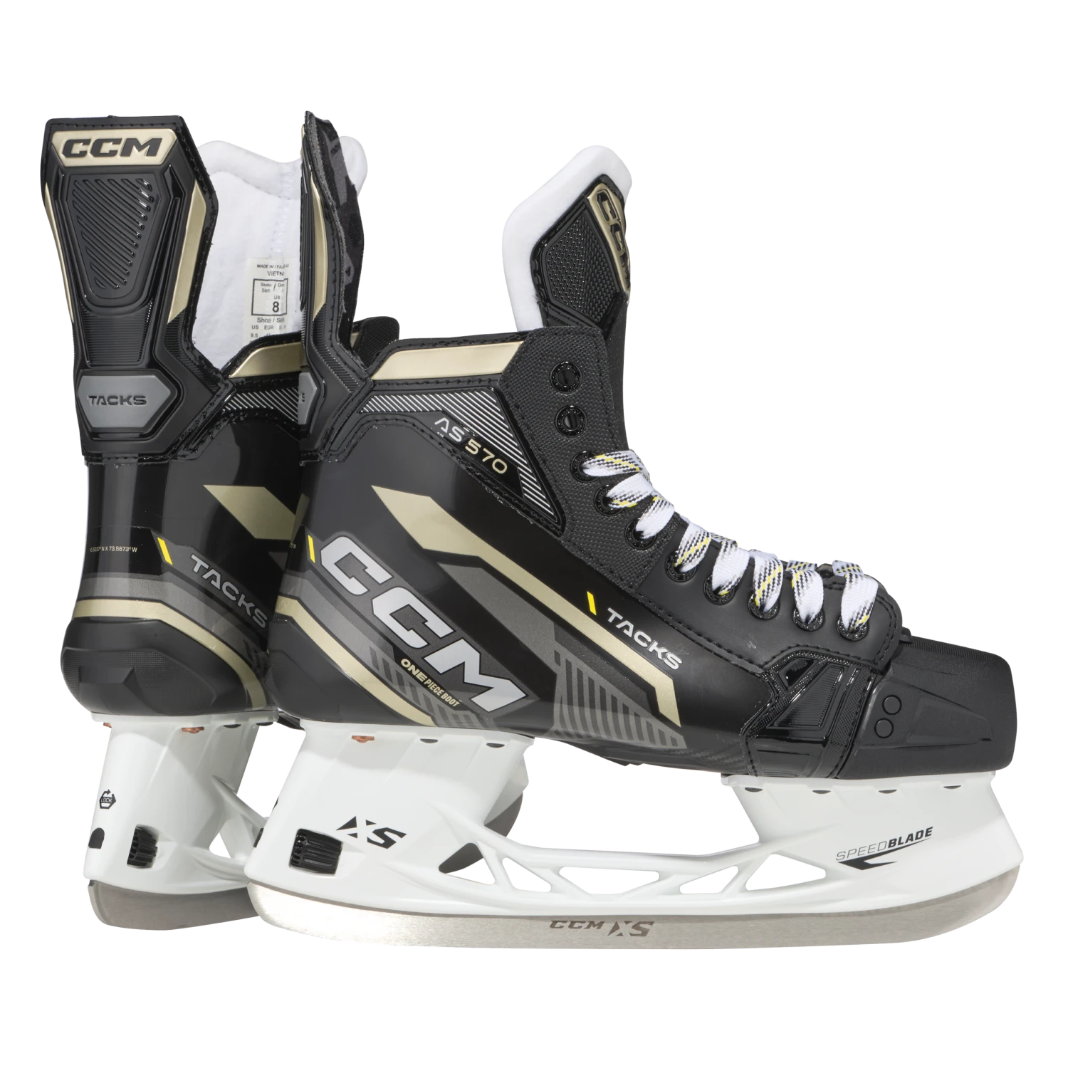 An ultra-lightweight footbed, a closer fit, and a solid core. The TACKS AS 570 hockey skates are all about delivering more power on the ice. Take advantage of their one-piece boot for more direct energy transfer and longer strides.