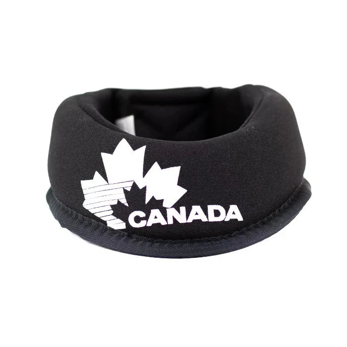 The Team Canada hockey neck guard has a contoured to fit nicely around your neck ,with a plastic integrated layer runner inside the neck guard for added protection.